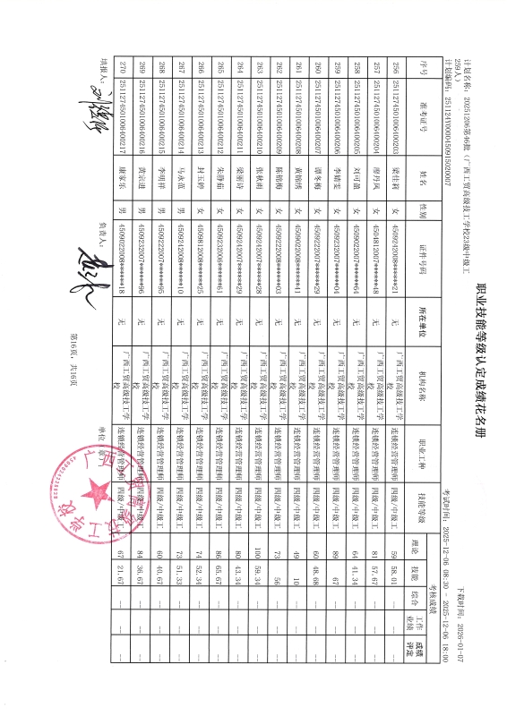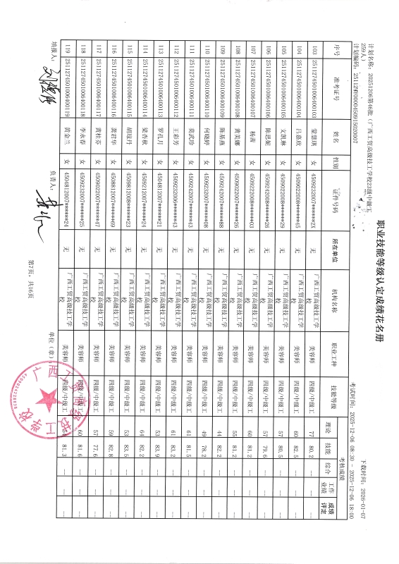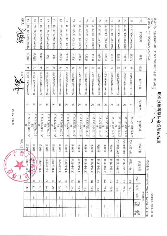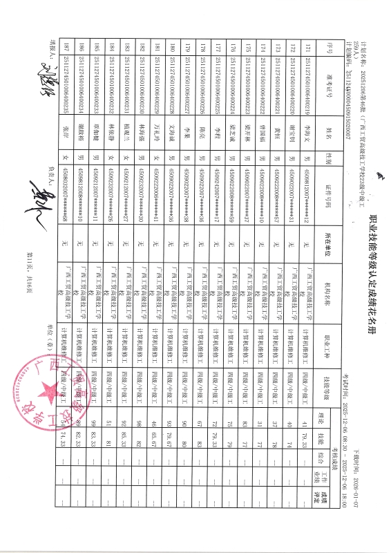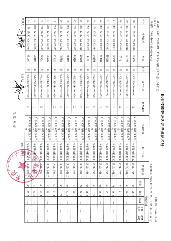 广西工贸高级技工学校关于2025-12-20第50批职业技能等级认定成绩公示