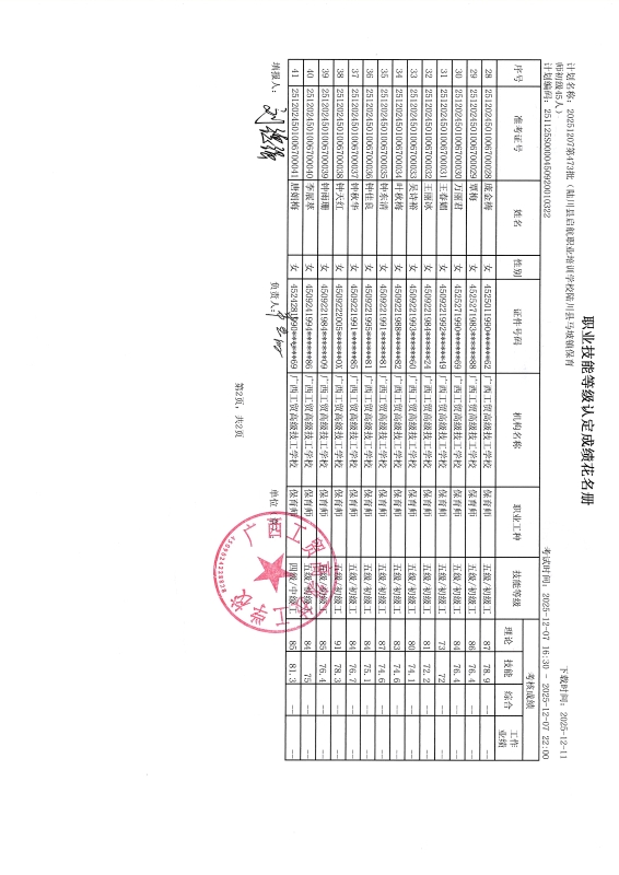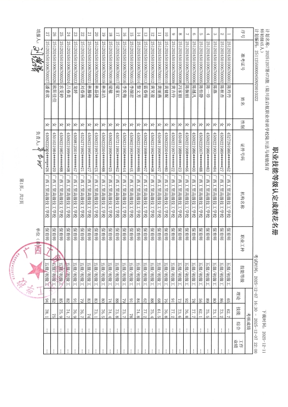 广西工贸高级技工学校关于2025-12-03第29批专项职业能力认定成绩公示