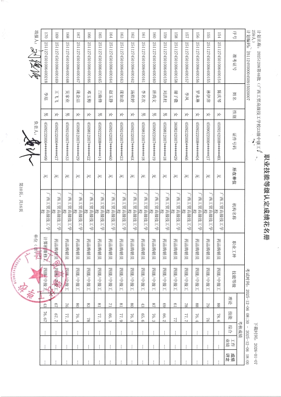 广西工贸高级技工学校关于2025-12-06第46批职业技能等级认定成绩公示