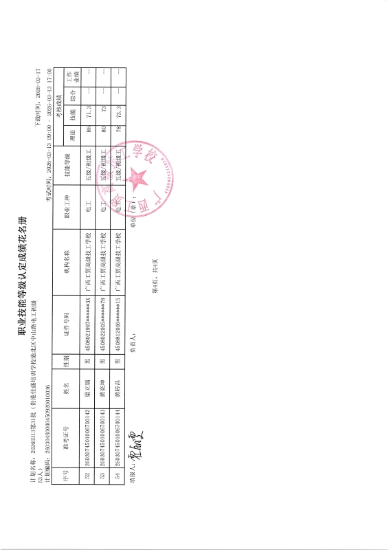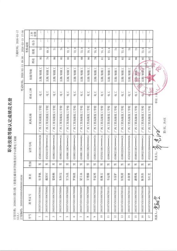 广西工贸高级技工学校关于2026-03-14第30批职业技能等级认定成绩公示