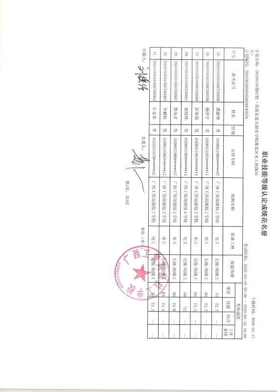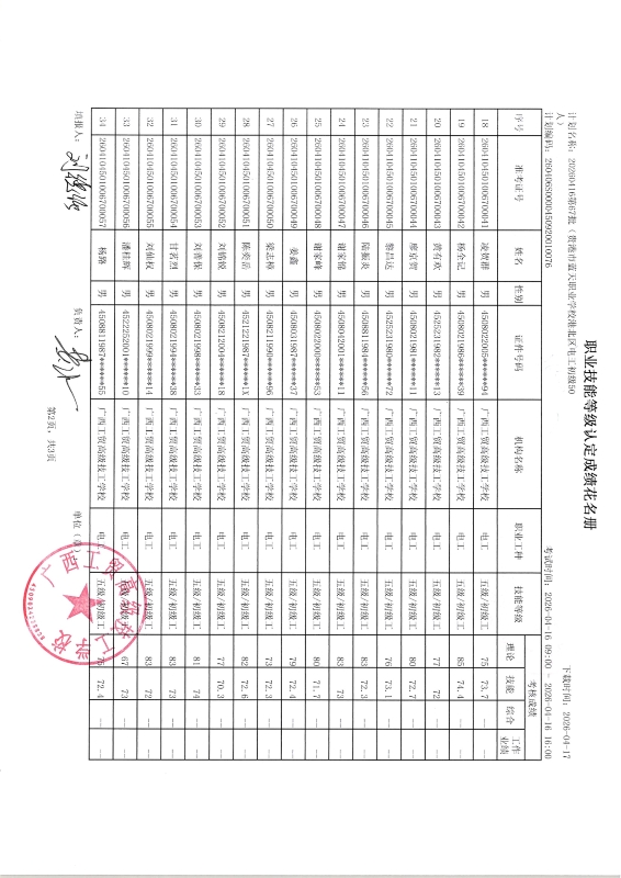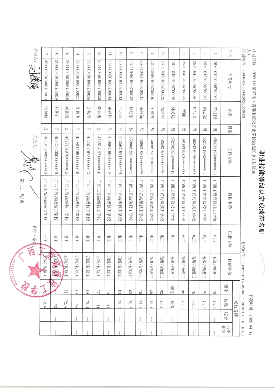 广西工贸高级技工学校关于2026-04-16第71批职业技能等级认定成绩公示