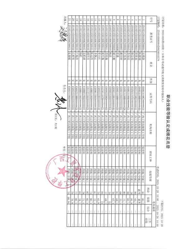 广西工贸高级技工学校关于2025-10-26第432批职业技能等级认定成绩公示