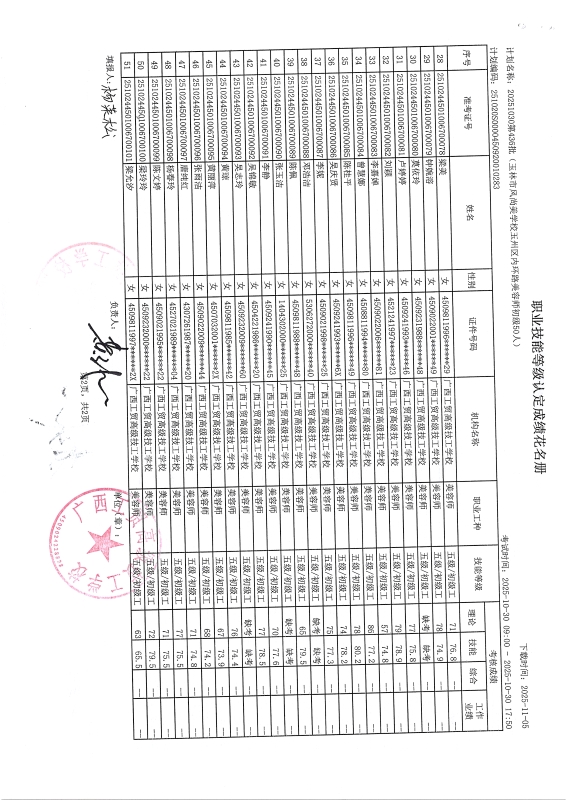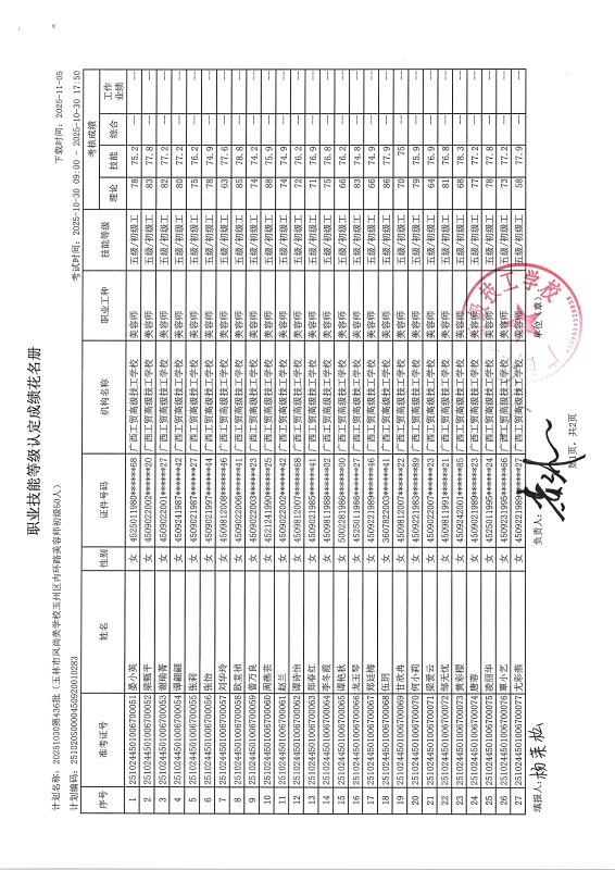 广西工贸高级技工学校关于2025-10-30第436批职业技能等级认定成绩公示