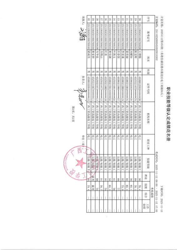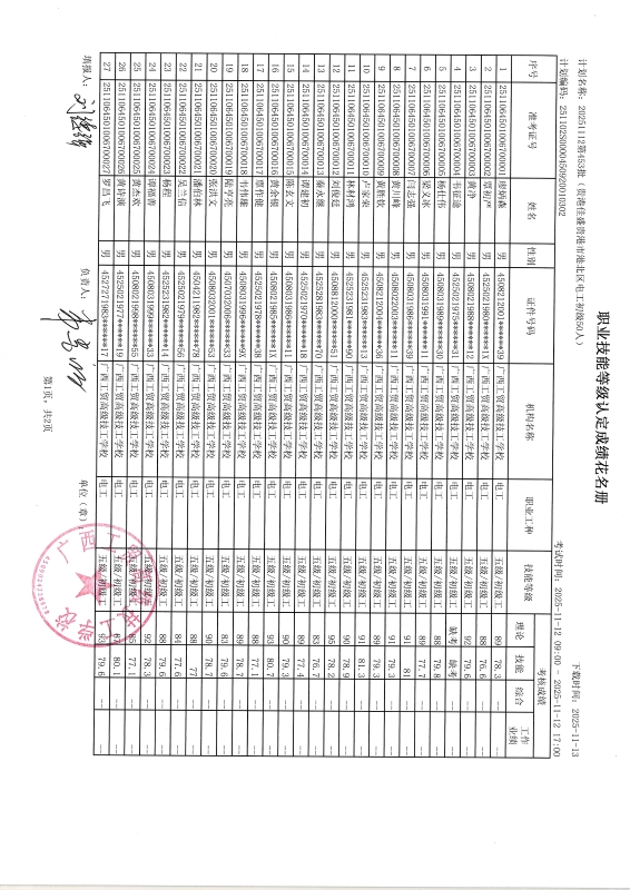 广西工贸高级技工学校关于2025-11-12第453批职业技能等级认定成绩公示