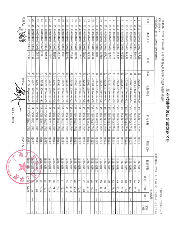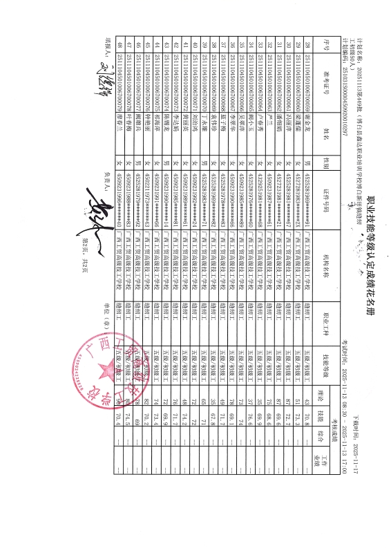广西工贸高级技工学校关于2025-11-13第449批职业技能等级认定成绩公示