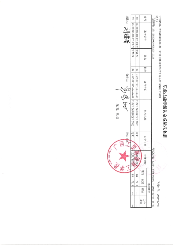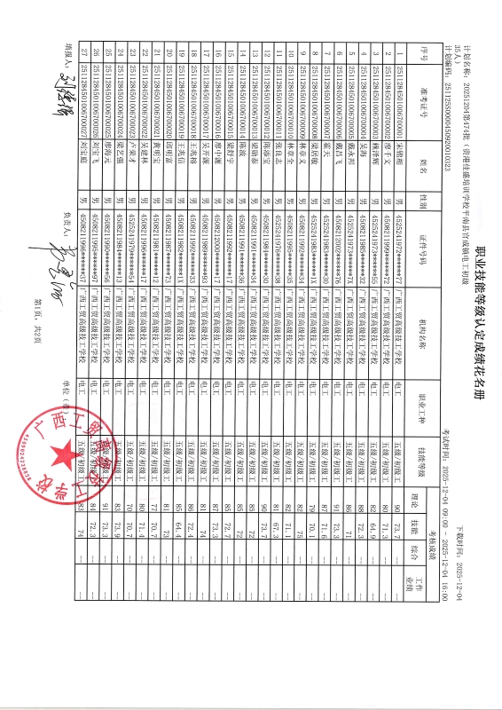广西工贸高级技工学校关于2025-12-04第474批职业技能等级认定成绩公示
