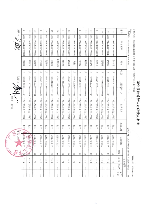 广西工贸高级技工学校关于2026-3-26第35批职业技能等级认定成绩公示