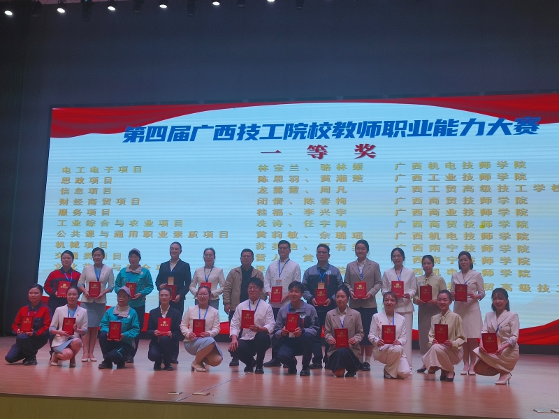 近日,第四届广西技工院校教师职业能力大赛圆满落幕。我校教师凭借扎实的专业能力、精湛的教学技艺和昂扬的精神风貌,在比赛中奋勇争先,最终取得优异成绩。我校共有六支队伍入围现场决赛,最终荣获一等奖1项、二等奖2项、三等奖3项,展现了我校教师队伍卓越的综合素质与拼搏向上的奋斗姿态。