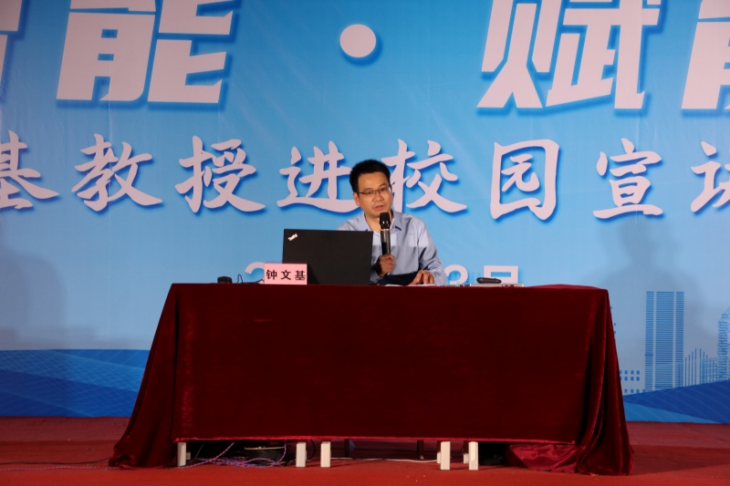 图为钟文基教授在我校宣讲