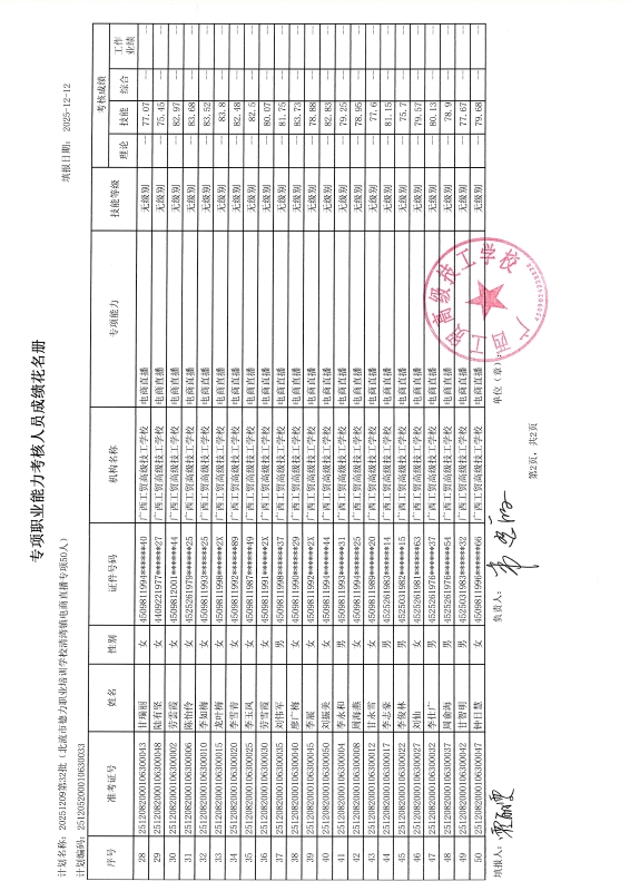 广西工贸高级技工学校关于2025-12-09第32批专项职业能力认定成绩公示