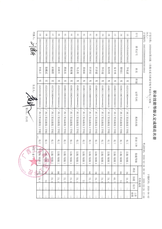 广西工贸高级技工学校关于2026-3-26第35批职业技能等级认定成绩公示