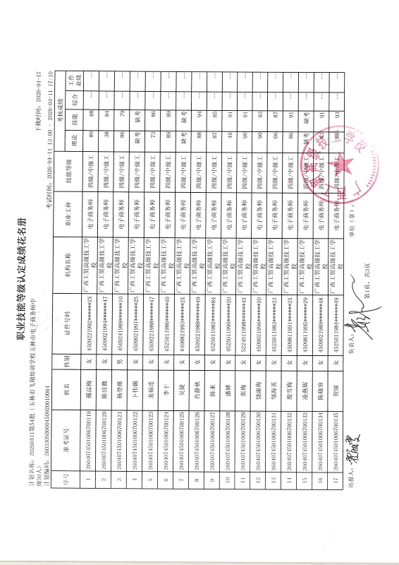 广西工贸高级技工学校关于2026-04-16第71批职业技能等级认定成绩公示