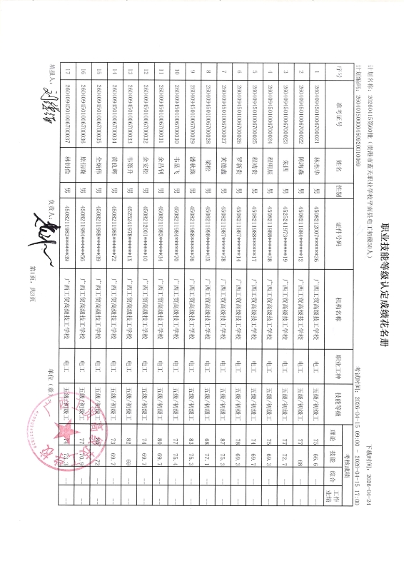 广西工贸高级技工学校关于2026-4-15第60批职业技能等级认定成绩公示