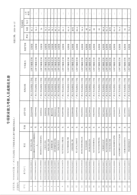 广西工贸高级技工学校关于2026-04-25第6批专项职业能力认定成绩公示