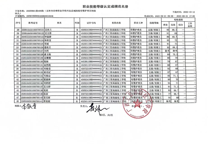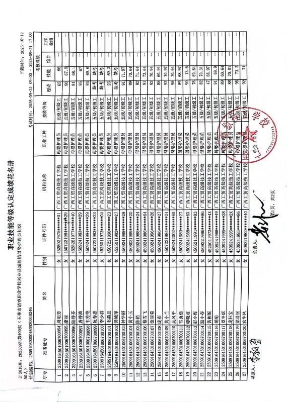 广西工贸高级技工学校关于2025-9-21第400批职业技能等级认定成绩公示