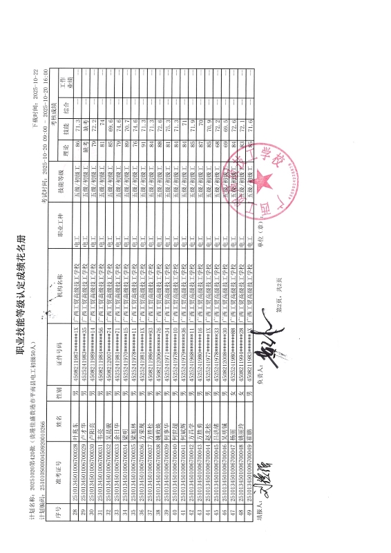 广西工贸高级技工学校关于2025-10-20第420批职业技能等级认定成绩公示