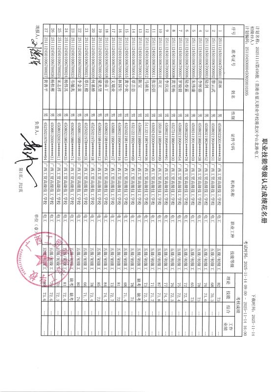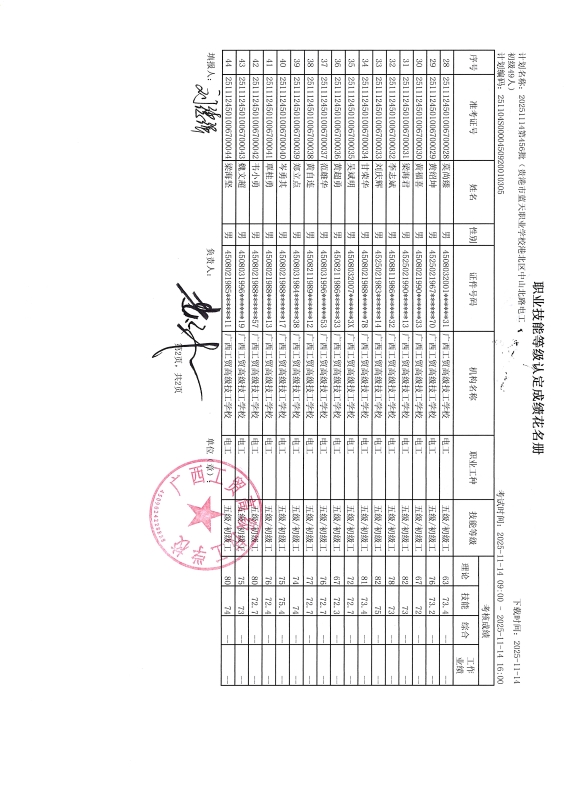 广西工贸高级技工学校关于2025-11-14第456批职业技能等级认定成绩公示