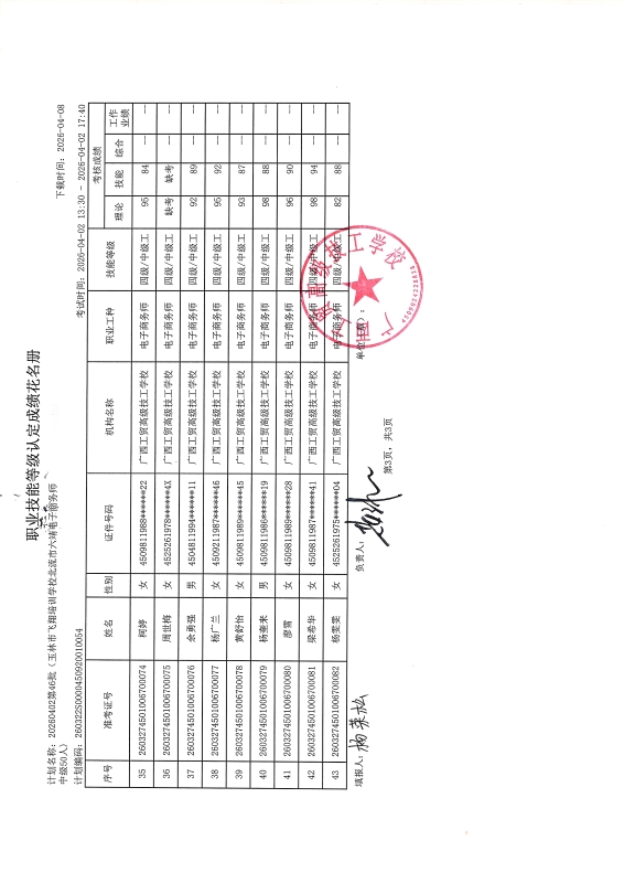 广西工贸高级技工学校关于2026-04-02第46批职业技能等级认定成绩公示