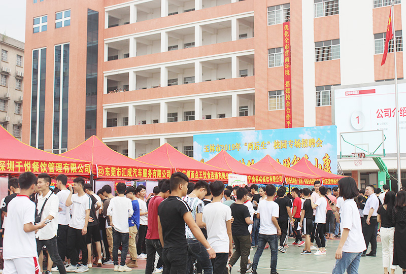 5月14日上午,由广西壮族自治区就业局、玉林市人力资源和社会保障局主办,玉林市就业局承办,广西工贸高级技工学校协办的的2019年玉林市“两后生”校园专场招聘会在广西工贸高级技工学校运动场举行。