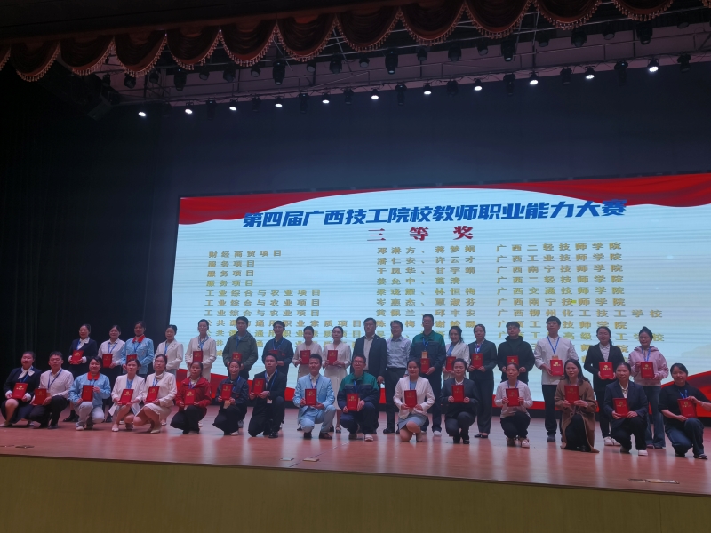 近日,第四届广西技工院校教师职业能力大赛圆满落幕。我校教师凭借扎实的专业能力、精湛的教学技艺和昂扬的精神风貌,在比赛中奋勇争先,最终取得优异成绩。我校共有六支队伍入围现场决赛,最终荣获一等奖1项、二等奖2项、三等奖3项,展现了我校教师队伍卓越的综合素质与拼搏向上的奋斗姿态。
