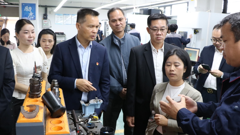 学校领导班子陪同代表团先后参观了玉州、福绵两个校区。在党委书记、校长林德顺同志的介绍下,详细了解烹饪(中式烹调)、新能源汽车检测与维修、服装设计与制作、数控加工及电子商务等重点专业实训课堂的教学模式,实地观摩学生实操过程,并与师生互动交流: